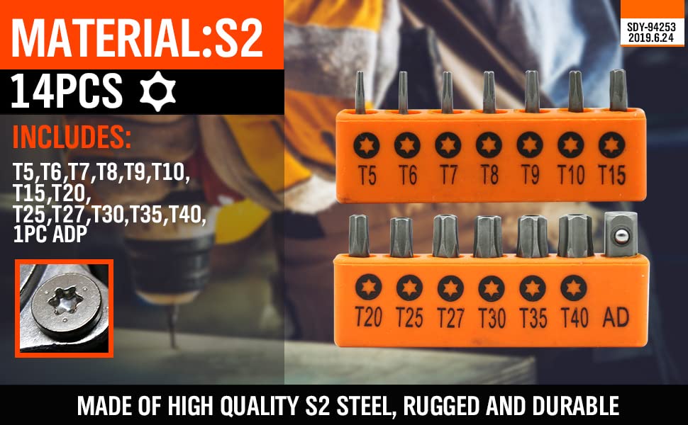 - Made of high-quality S2 steel, with sturdy hardened & tempered construction, Perfectly matched to most standard tamper-resistant German-made star 6-point screws.