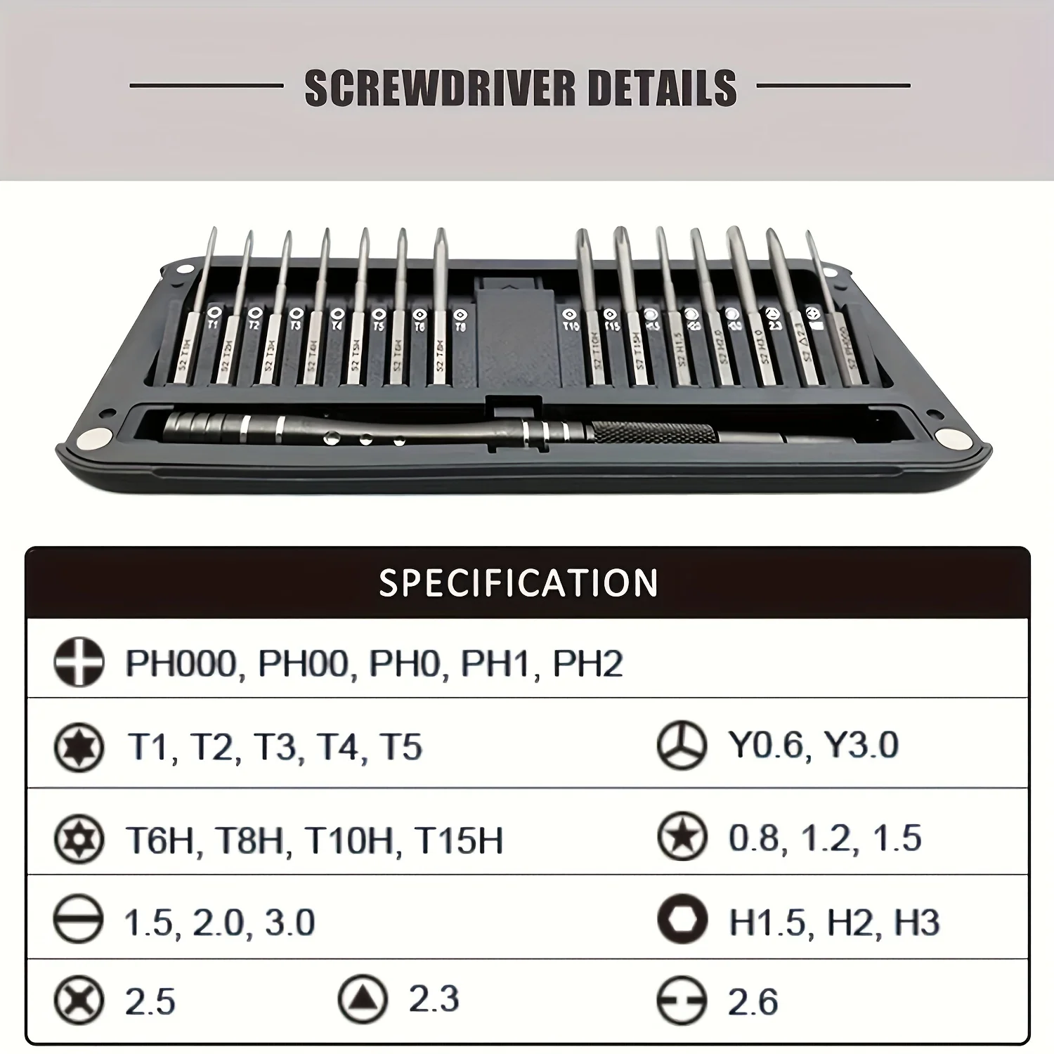 Various types of heads made of S2 alloy steel are ready and perfect for everything from furniture repair to electrical appliance maintenance. This is your most effective assistant when facing various challenges in life, making repair an art and allowing creation everywhere.